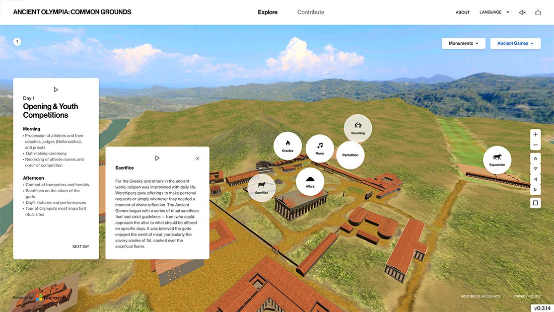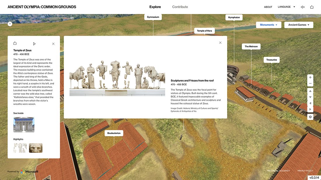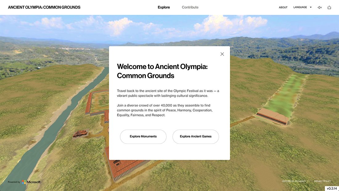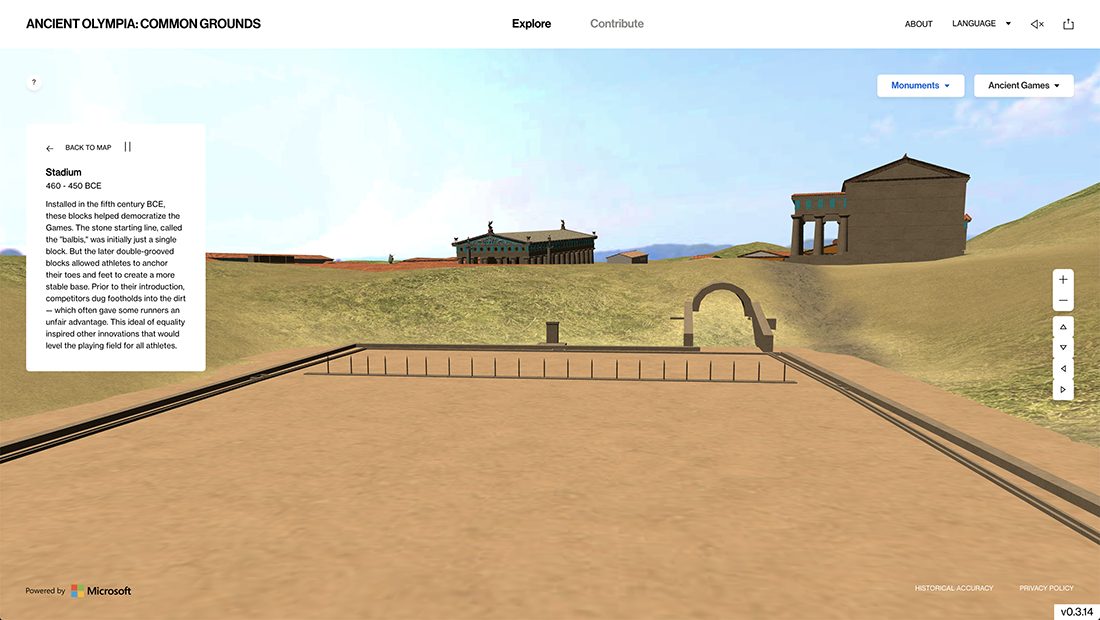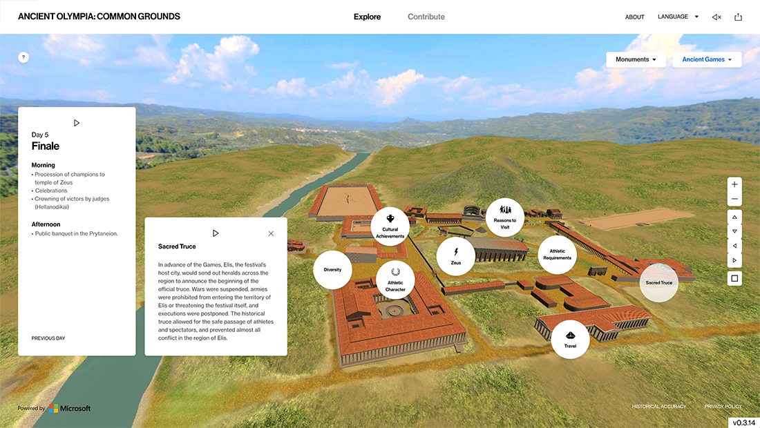 ‘Ancient Olympia: Common Grounds’ digitally preserves the cultural and archaeological heritage of the site of Olympia using Microsoft technology. It explores how the ancient Olympic Games fostered “common ground” that was anchored in values such as peace, harmony, cooperation, equality, fairness, and respect.