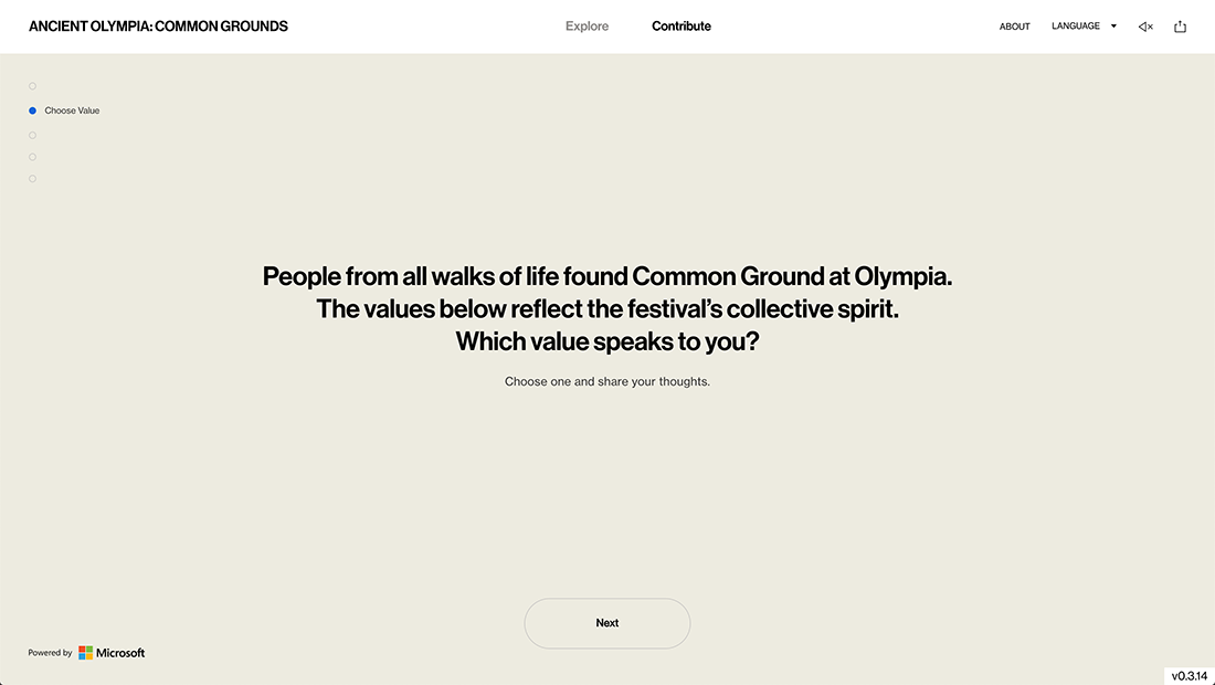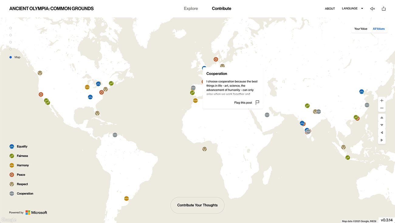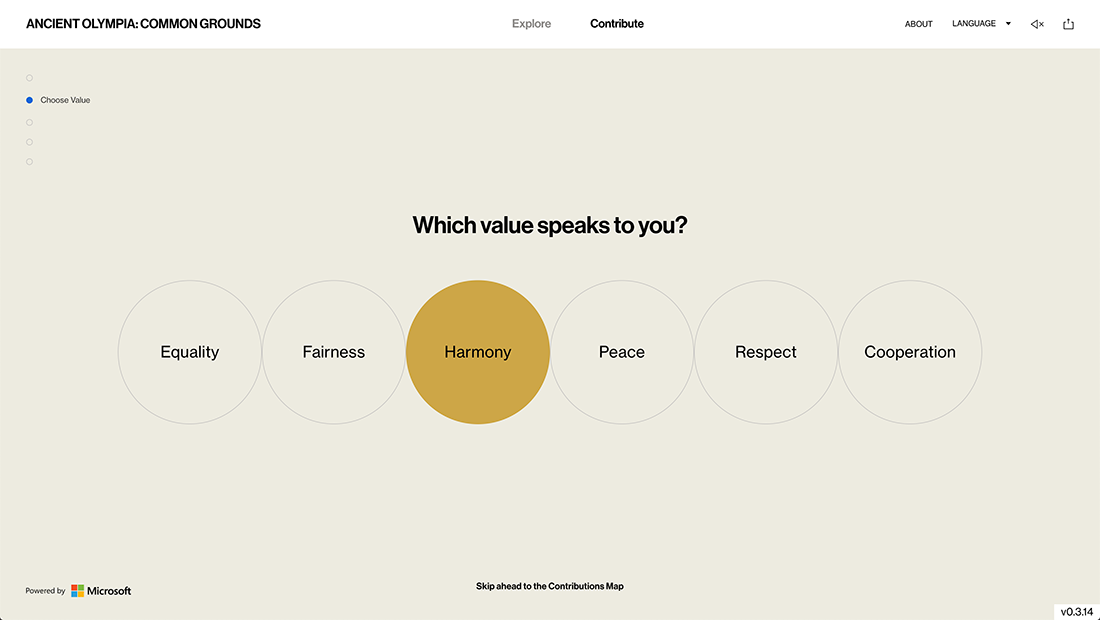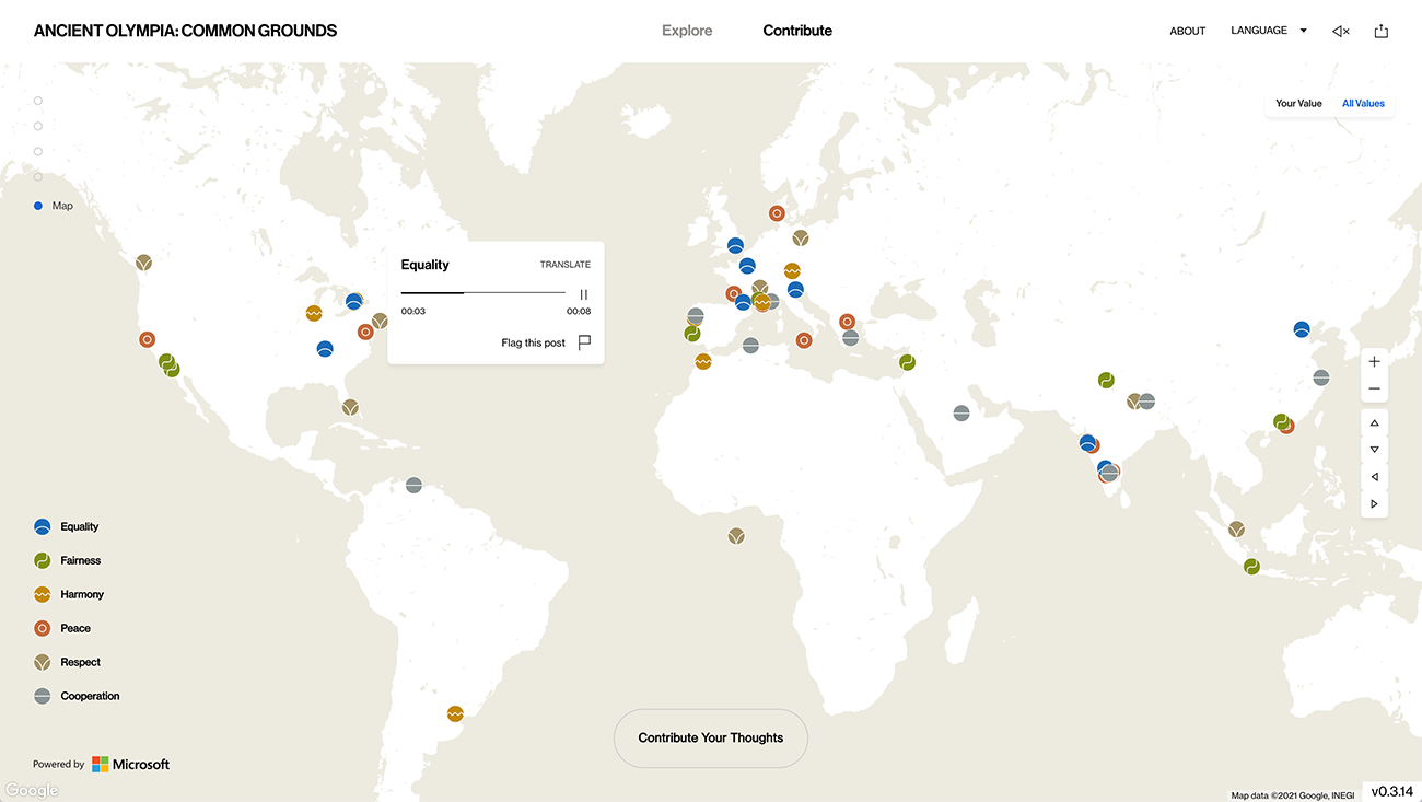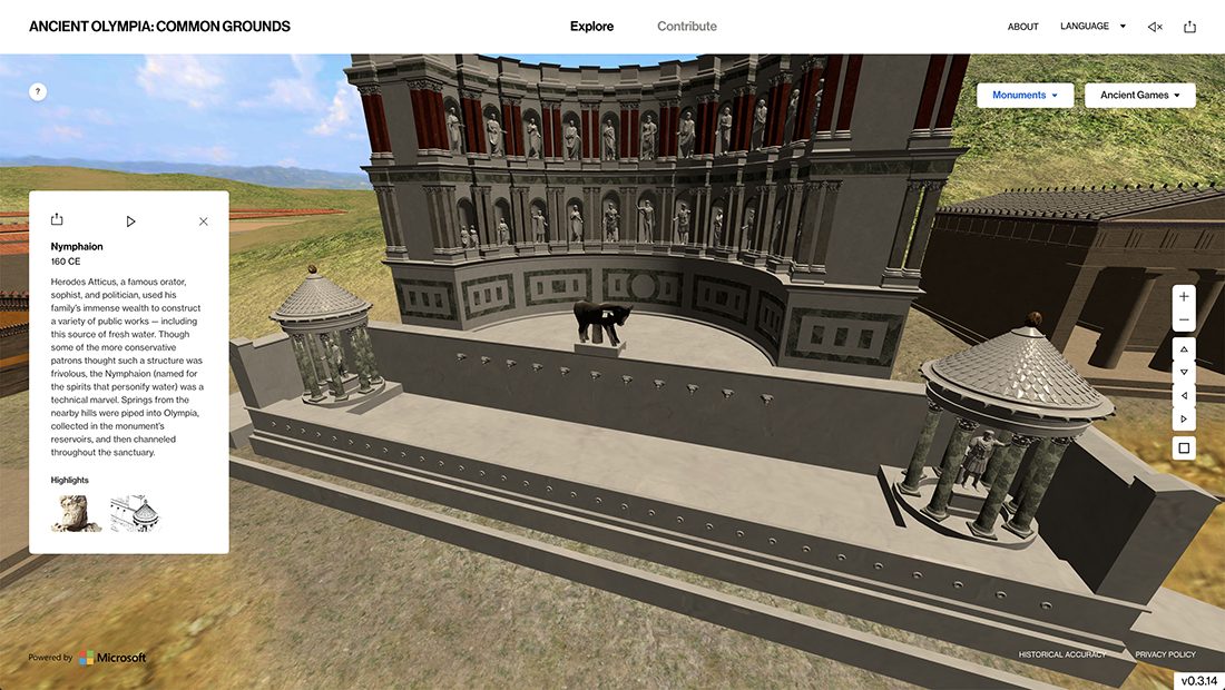 ‘Ancient Olympia: Common Grounds’ digitally preserves the cultural and archaeological heritage of the site of Olympia using Microsoft technology. It explores how the ancient Olympic Games fostered “common ground” that was anchored in values such as peace, harmony, cooperation, equality, fairness, and respect.